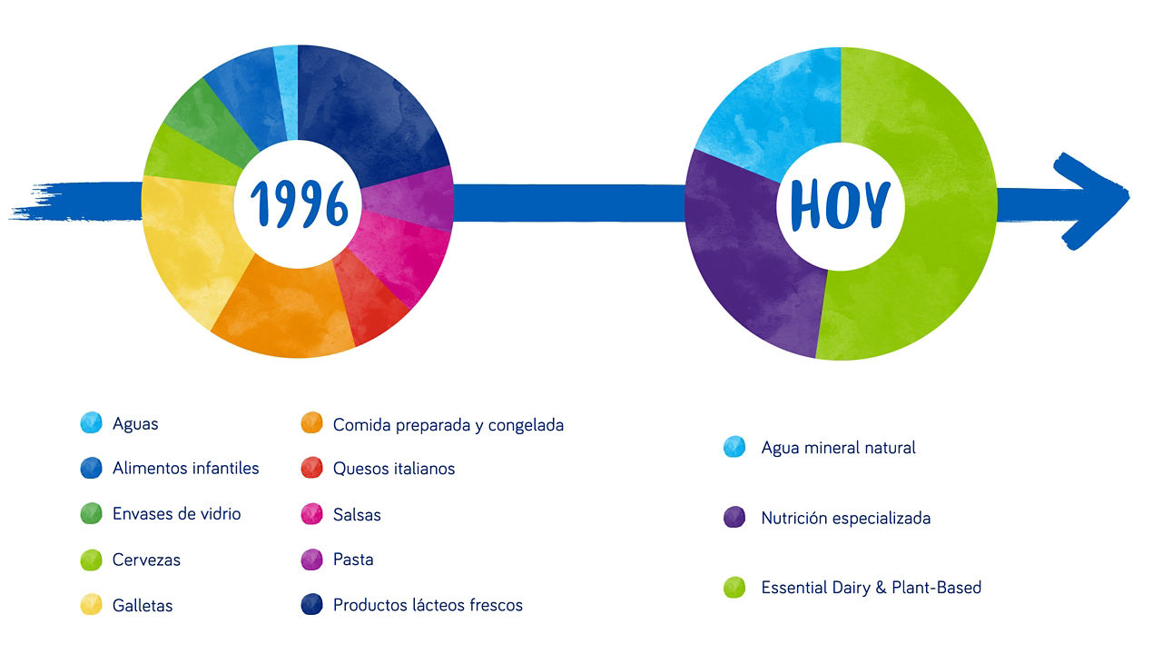 Actualmente nuestros productos y marcas están totalmente alineados con nuestra misión, aportar salud a través de la alimentación al mayor número de personas posible, desarrollando productos que acompañan nutricionalmente a las personas en todas las etapas de la vida: desde el nacimiento y construyendo los fundamentos de la salud futura del bebé durante sus 1.000 primeros días, pasando por ayudar a mantener una buena salud durante toda la vida -poniendo especial foco en la infancia, cuando se adquieren los hábitos de alimentación e hidratación para el futuro- e, incluso, contribuyendo a una buena alimentación en los momentos más vulnerables.