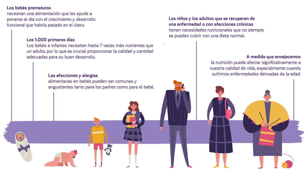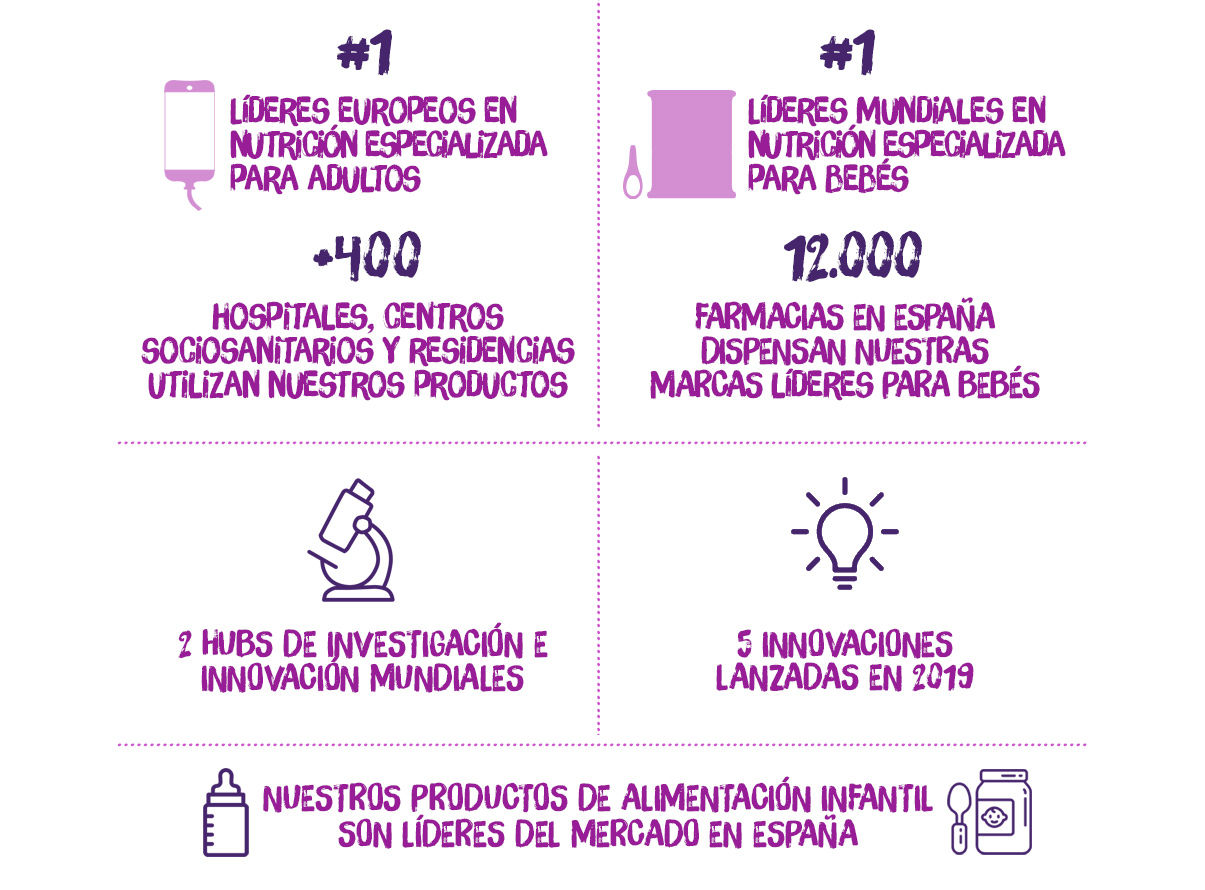 Estamos al servicio de la vida y tenemos el objetivo de impactar de forma positiva en las etapas desde el nacimiento hasta la vejez, ofreciendo productos de alta calidad que cumplan con las necesidades nutricionales específicas de las personas más vulnerables. Nuestro principal compromiso es estar al lado de las personas con necesidades especiales para su buen estado nutricional, y dar apoyo a la comunidad médica en su labor con aquellos pacientes que necesitan una alimentación adaptada.