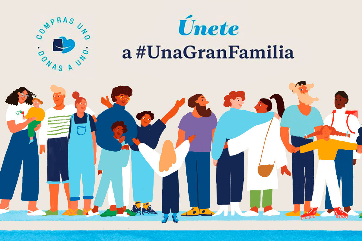 Para ello, entre septiembre y diciembre, por cada compra de un pack familiar Danone, se contribuirá a la donación de alimentos saludables para niños que lo necesitan, en colaboración con Cruz Roja y La Federación Española de Bancos de Alimentos (FESBAL). La ilustradora Violeta No y ha sido la responsable de diseñar la imagen del pack con ilustraciones que representan #UnaGranFamilia.