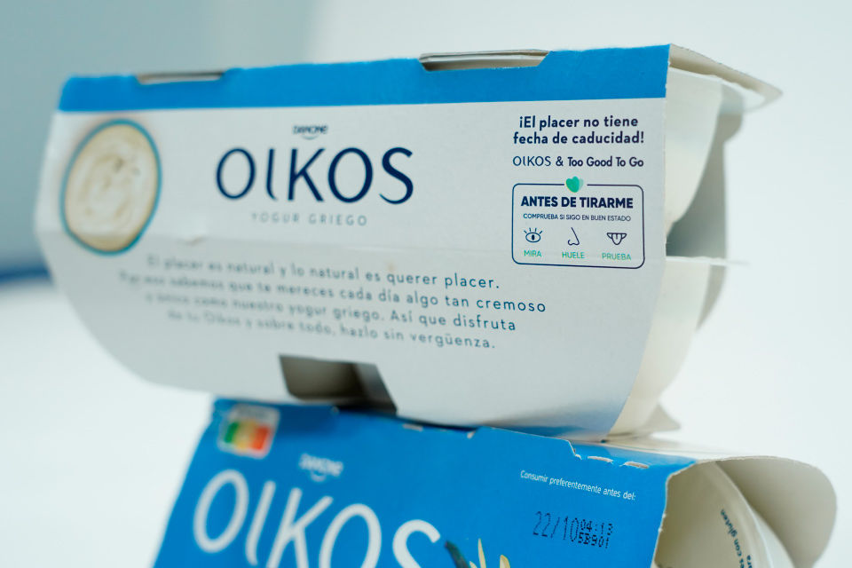 Danone lleva meses trabajando en la implementación del distintivo “Fechas con sentido: Mira, Huele, Prueba” desarrollado por Too Good To Go. El propósito de la compañía es incorporar este sello en sus yogures y productos de base vegetal, para ayudar al consumidor a comprobar si un alimento conserva sus características organolépticas y de seguridad alimentaria pasada la fecha de consumo preferente a través de los sentidos.