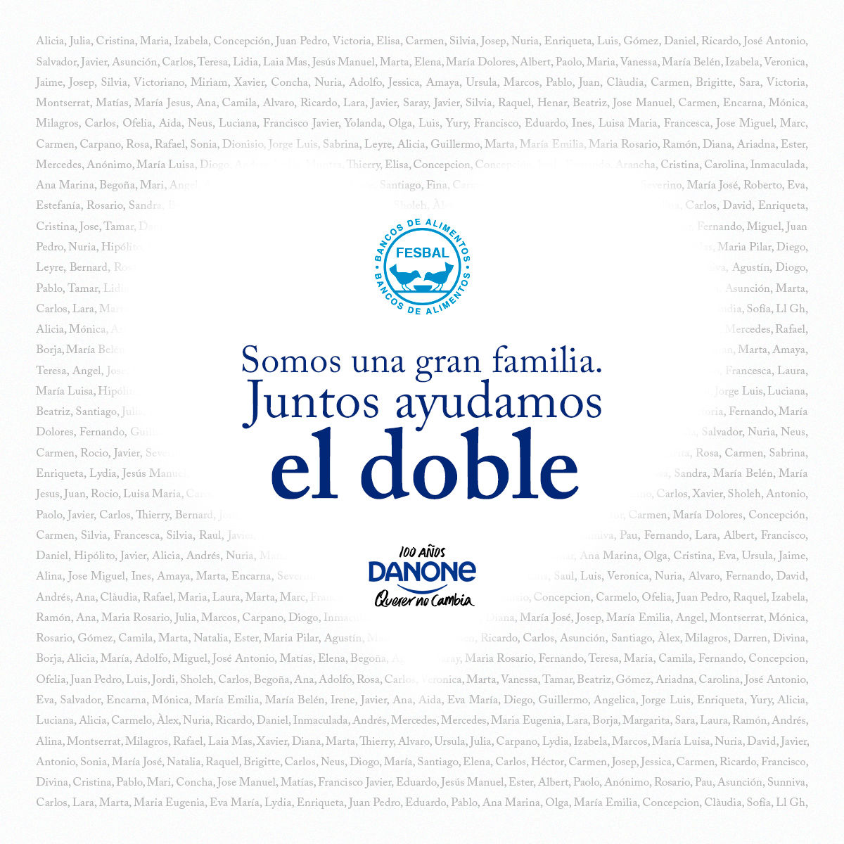 - “Querer el Doble” forma parte del programa de acción social “Alimentar por Amor”, con el que Danone ha donado hasta la fecha cerca de 2.500.000 unidades de yogures desde que se inició la pandemia.
