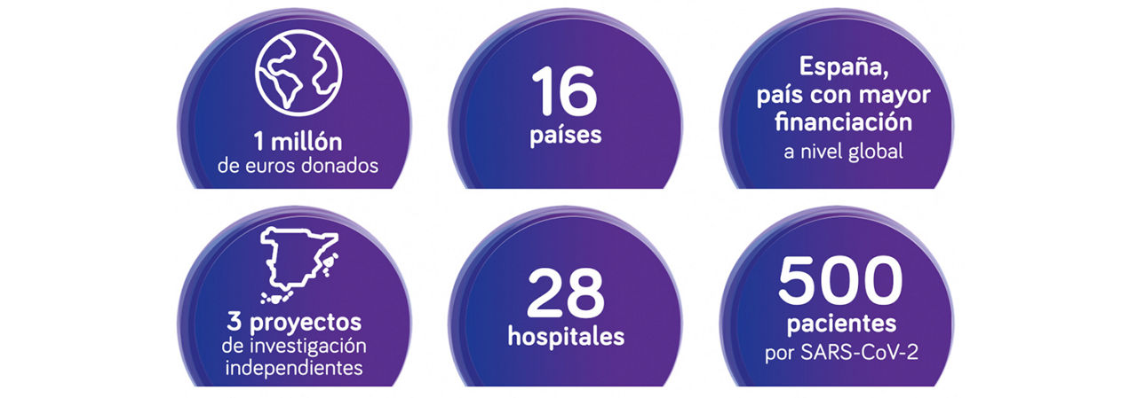 España, país referente en este proyecto, apoyará tres estudios de investigación independientes que se desarrollarán en 28hospitales de diferentes zonas geográficas, yinvolucrará a alrededor de 500 pacientes infectados por SARS-CoV-2.
