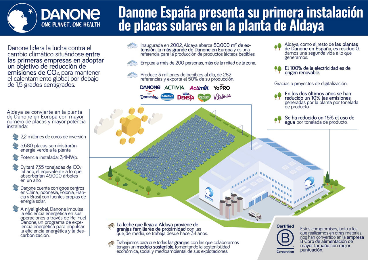 Danone ha realizado una inversión de más de 2 millones de euros en este proyecto, que permitirá reducir anualmente más de 735 toneladas de CO2, el equivalente al que absorberían 49.000 árboles plantados en un año.