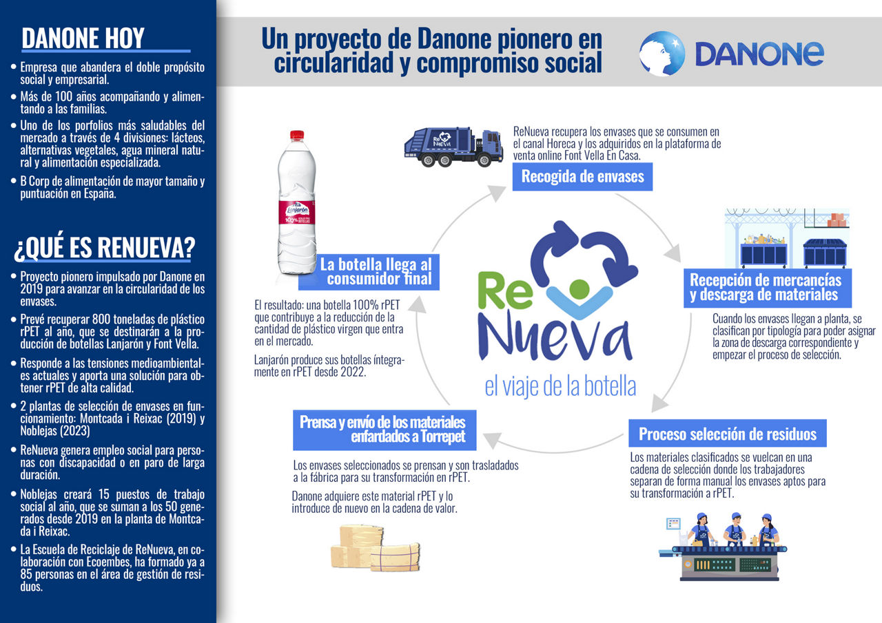 “Nos encontramos en un momento clave para garantizar que nuestro negocio avanza hacia los objetivos marcados en materia de sostenibilidad. De hecho, en Danone queremos estar a la cabeza de las iniciativas de circularidad que se impulsen en el país. En este contexto, y como compañía con un doble propósito económico y social, ofrecemos soluciones de impacto que pretenden ir por delante de la regulación actual. El proyecto ReNueva nace como una pequeña palanca de cambio dentro de la estrategia circular y social de la compañía, con el propósito de