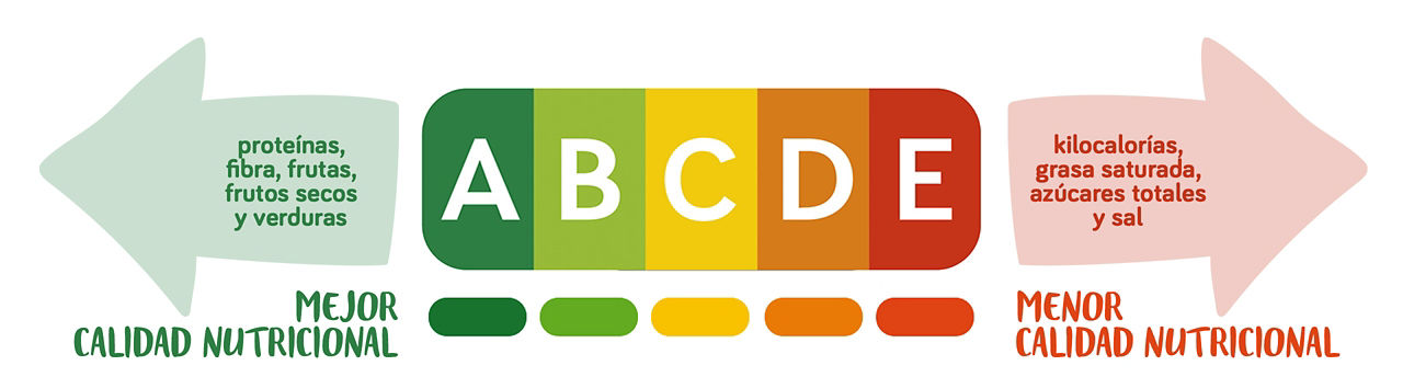 Cada producto se posiciona en una escala de 5 colores (niveles) que va desde el producto más favorable desde el plano nutricional (A-color verde) hasta el menos favorable (E-color rojo).